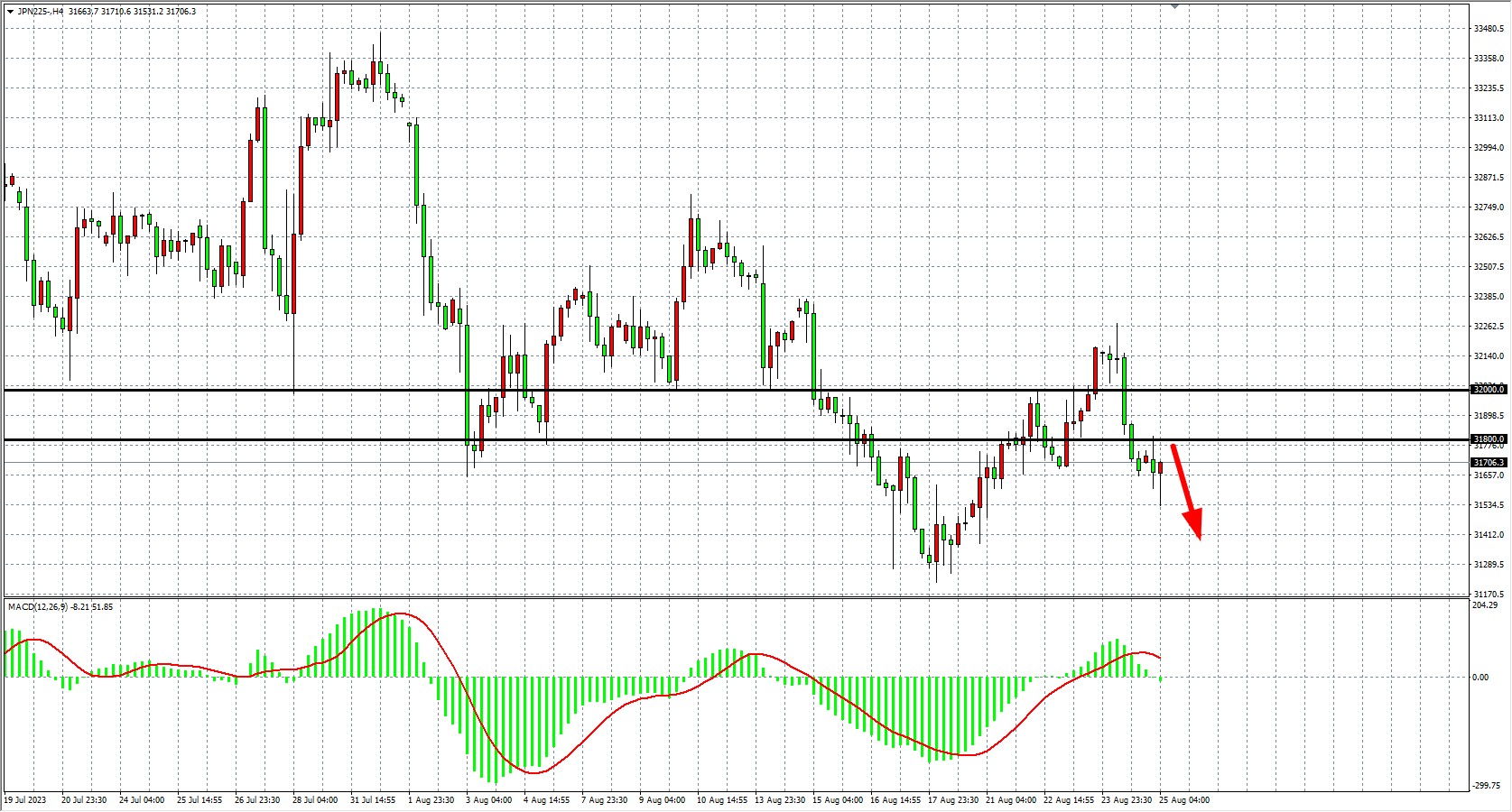 周五(8月25日)日经225指数收盘下跌647.50点,跌幅2.01%