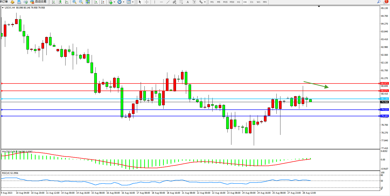 交易策略:80.130下方看跌,目标79.533  79.183