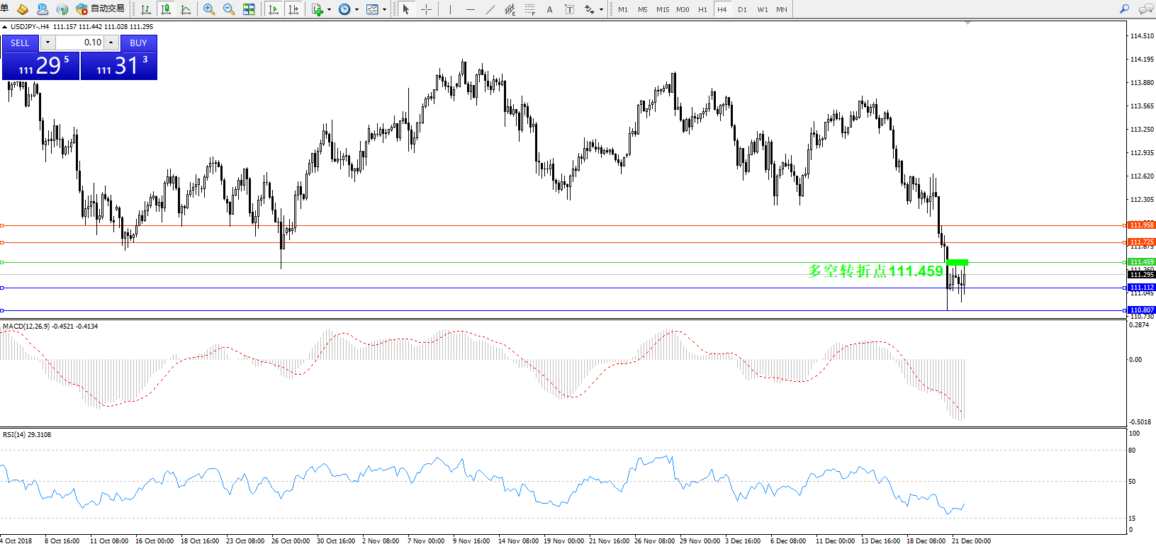 交易策略:111.459下方看跌,目标111.112、110.807