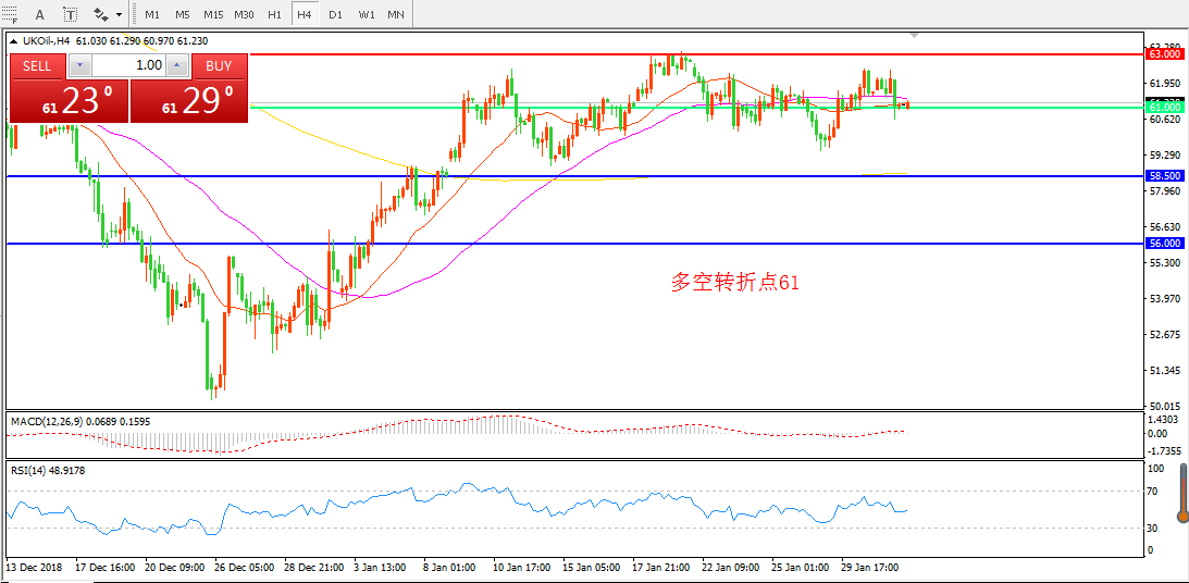 交易策略:在61.00之上看涨,目标63.00   67.00