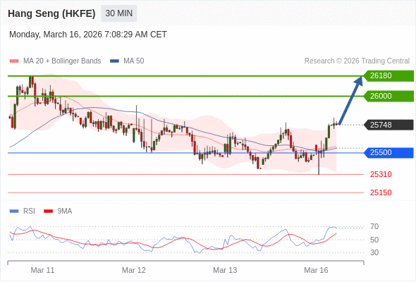 在 25500 之上,看涨,目标价位为 26000 ,然后为 26180 。