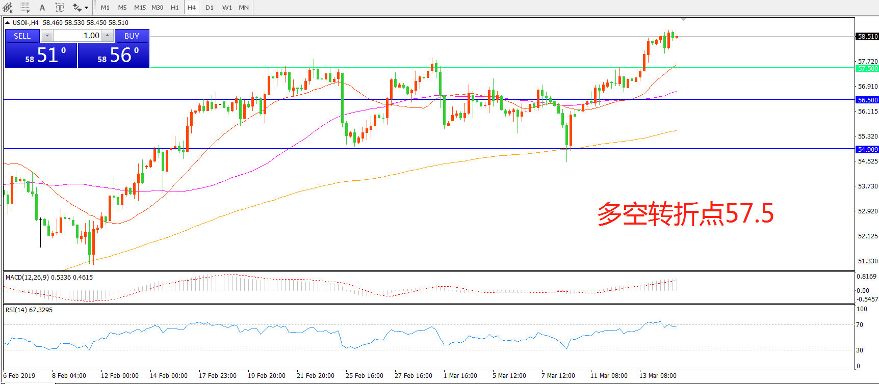 多空转折点:57.50