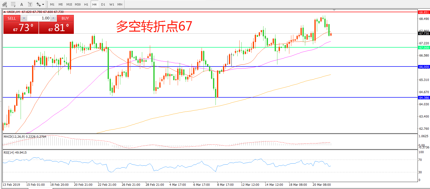 多空转折点:67.00