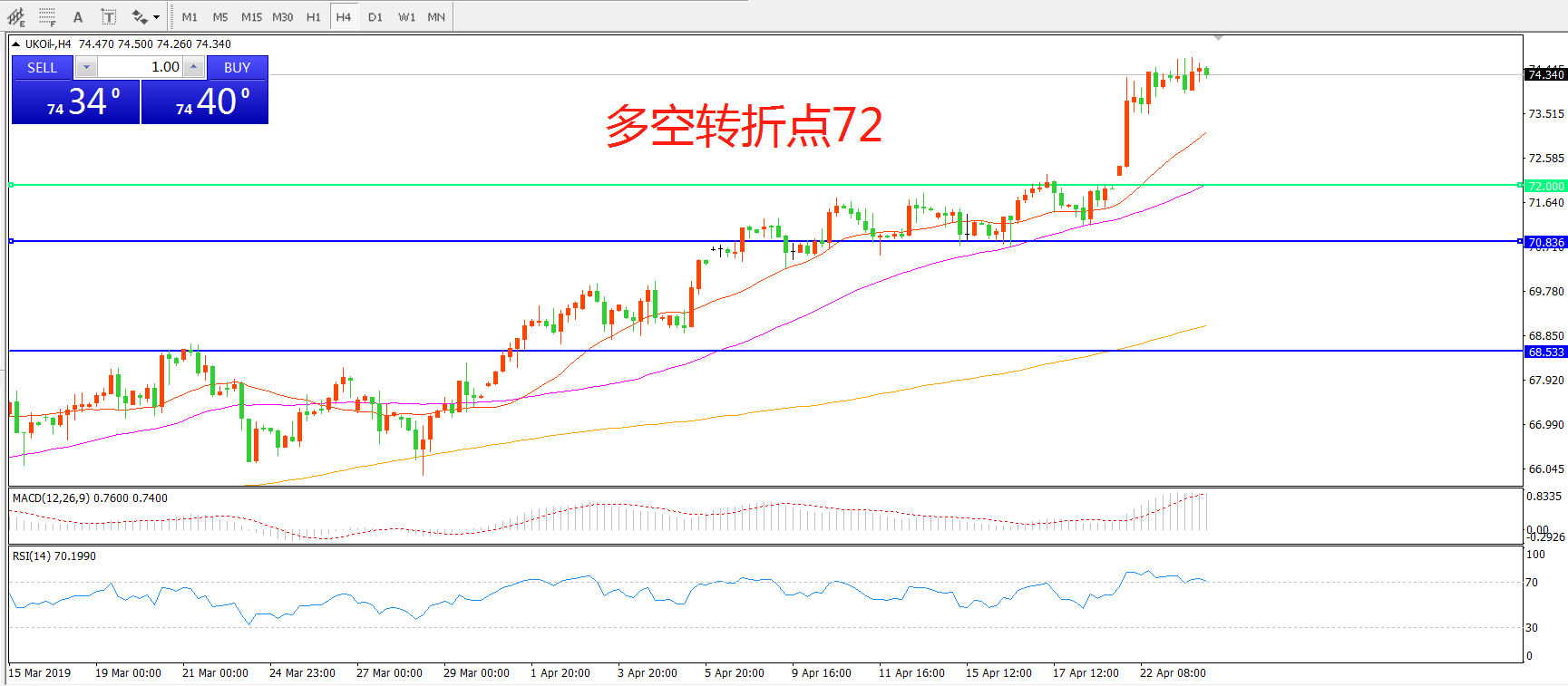 多空转折点:72.00