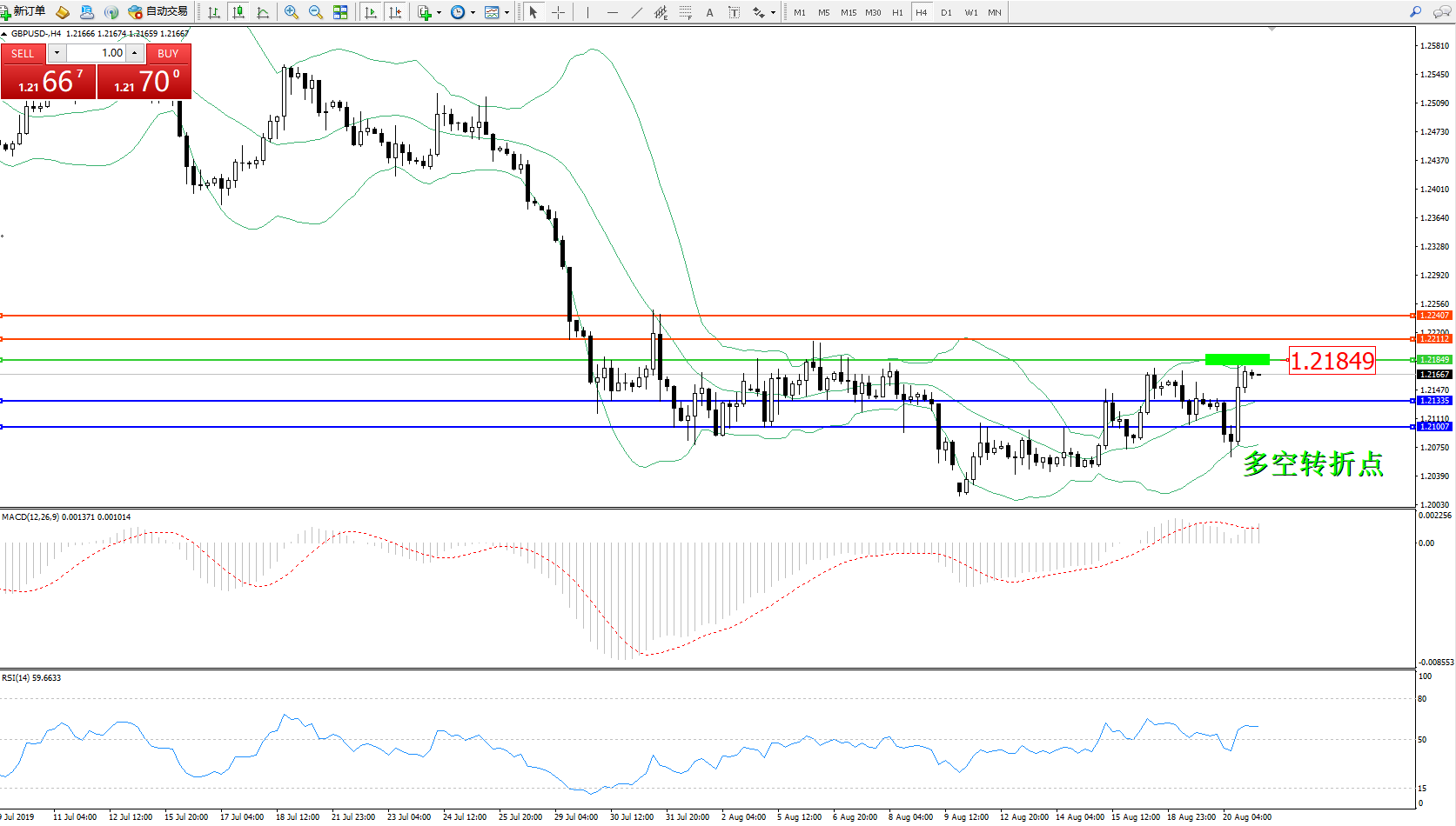 交易策略:1.21849下方看跌,目标1.21335、1.21007