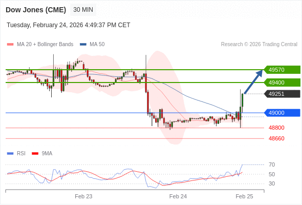 在 49000 之上,看涨,目标价位为 49400 ,然后为 49570 。