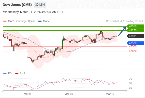 在 47500 之上,看涨,目标价位为 48270 ,然后为 48510 。