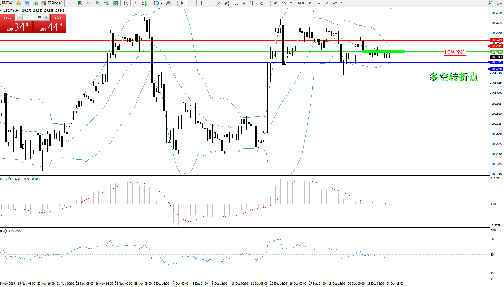 交易策略:109.390下方看跌,目标109.291109.228