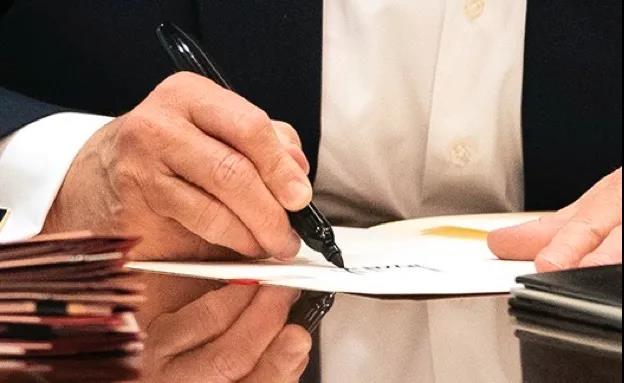 但马上就有美国记者在推特上写道,把照片放大显示特朗普在摆拍,他只是在一张白纸上写自己的名字。