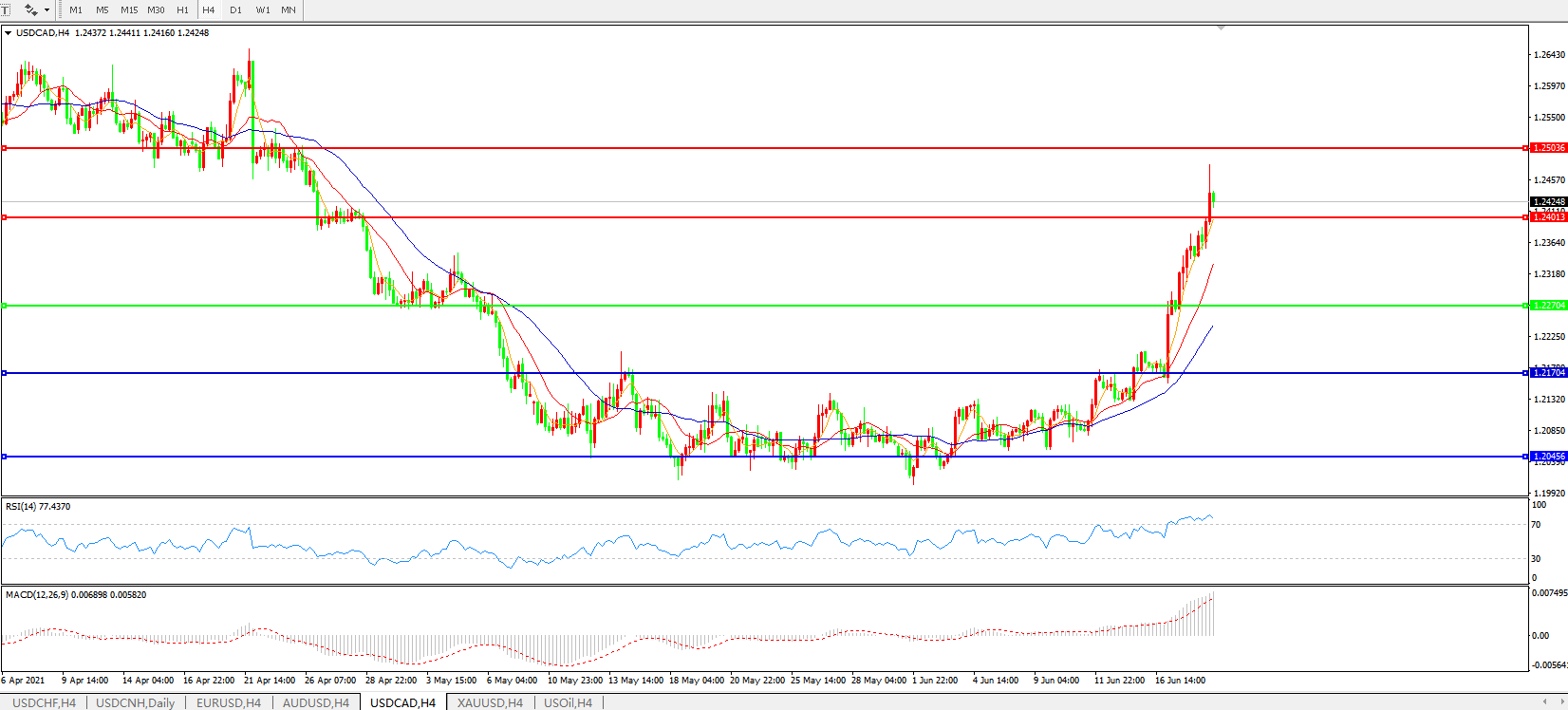 美元兑加元USDCAD    4小时图: