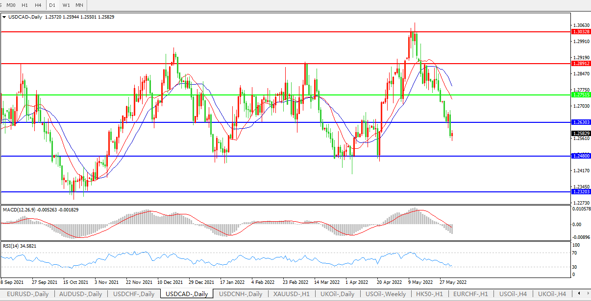 美元兑加元USDCAD 日线图: