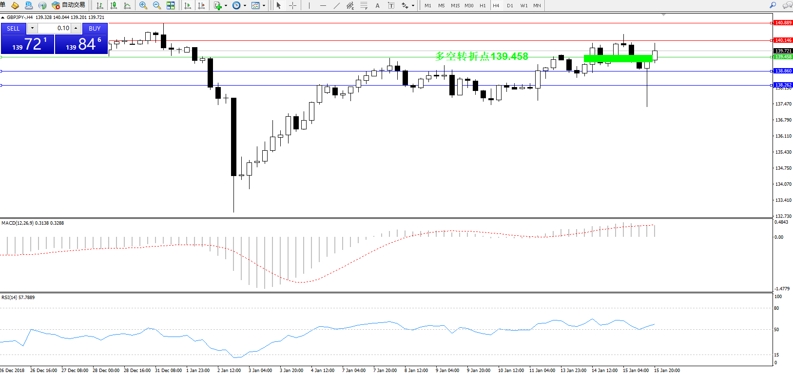 交易策略:139.458上方看涨,目标140.146、140.889